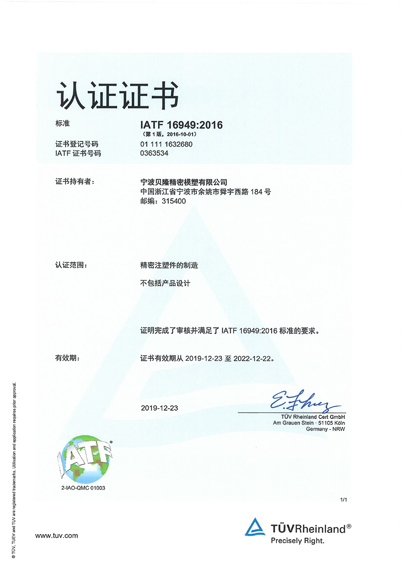 貝隆精密科技股份有限公司(股票代碼:301567)成立于2007年,坐落于中國模具之鄉、浙東名城浙江省余姚市,公司是專業從事精密注塑、沖壓、埋入成型、模具研發與制造的高新技術企業。被評定為國家制造業單項冠軍、國家級專精特新小巨人企業、國家知識產權優勢企業。